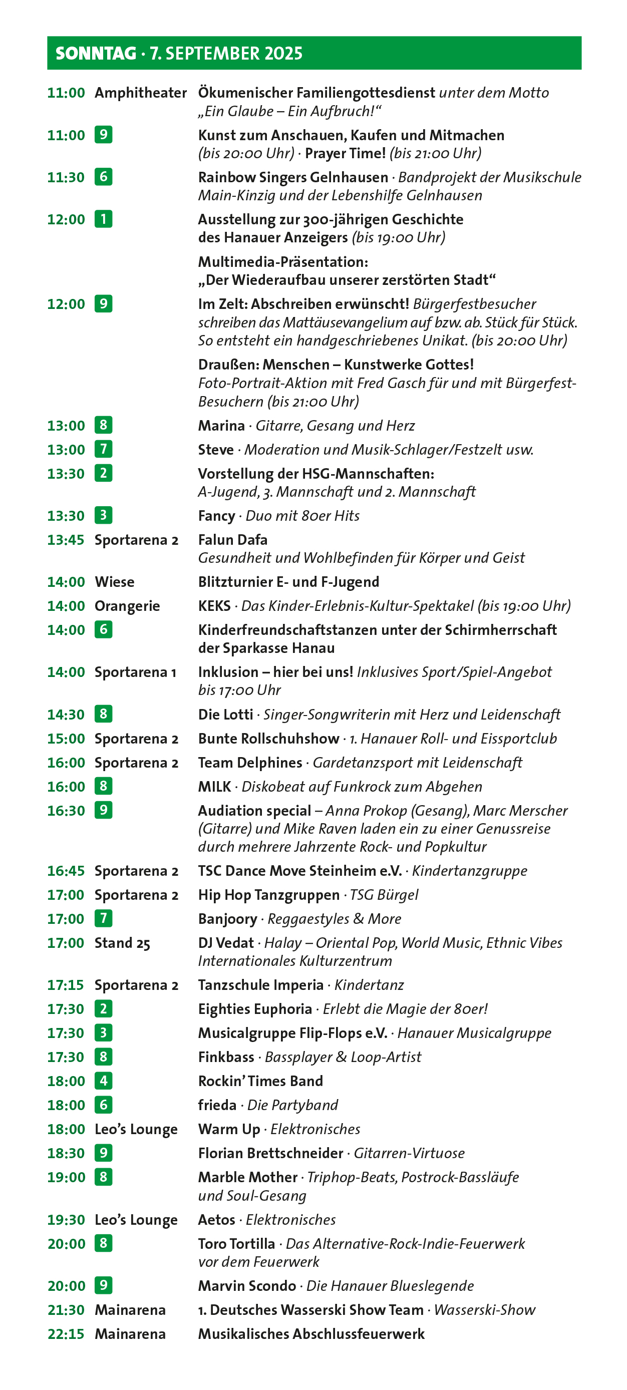 - Sonntag, 07.09.: 14:00 – 19:00 Uhr