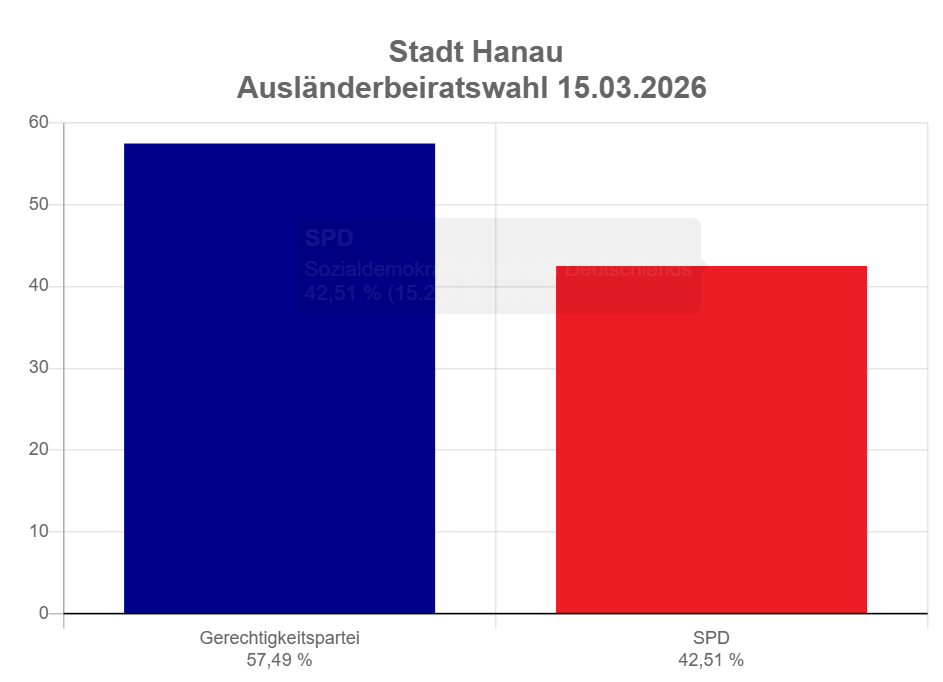 Die letzte Wahl des Ausländerbeirates in Hanau fand am 15.03.2026 erstmals gemeinsam mit den allgemeinen Kommunalwahlen statt.