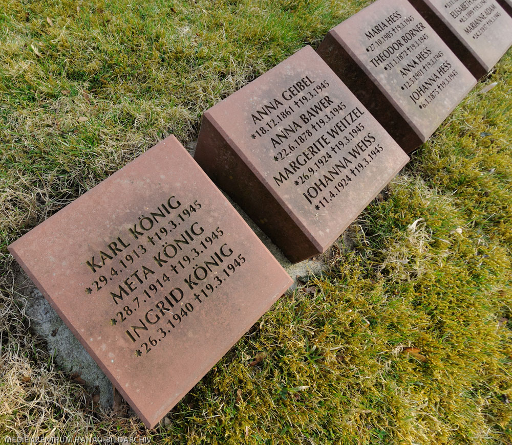 Im Rahmen eines Schulprojektes der Eugen-Kaiser-Schule, mit Unterstützung der Ludwig-Geißler-Schule, wurden zum 60. Jahrestag der Zerstörung Hanaus im Jahr 2005 die bestehenden Gräber und Inschriften auf dem Gedenkfeld erfasst. Die über 800 Namenstäfelchen samt Sterbedaten fanden auf drei großen, mit Sandsteinplatten umrandeten, Kreuzen einen neuen Platz.