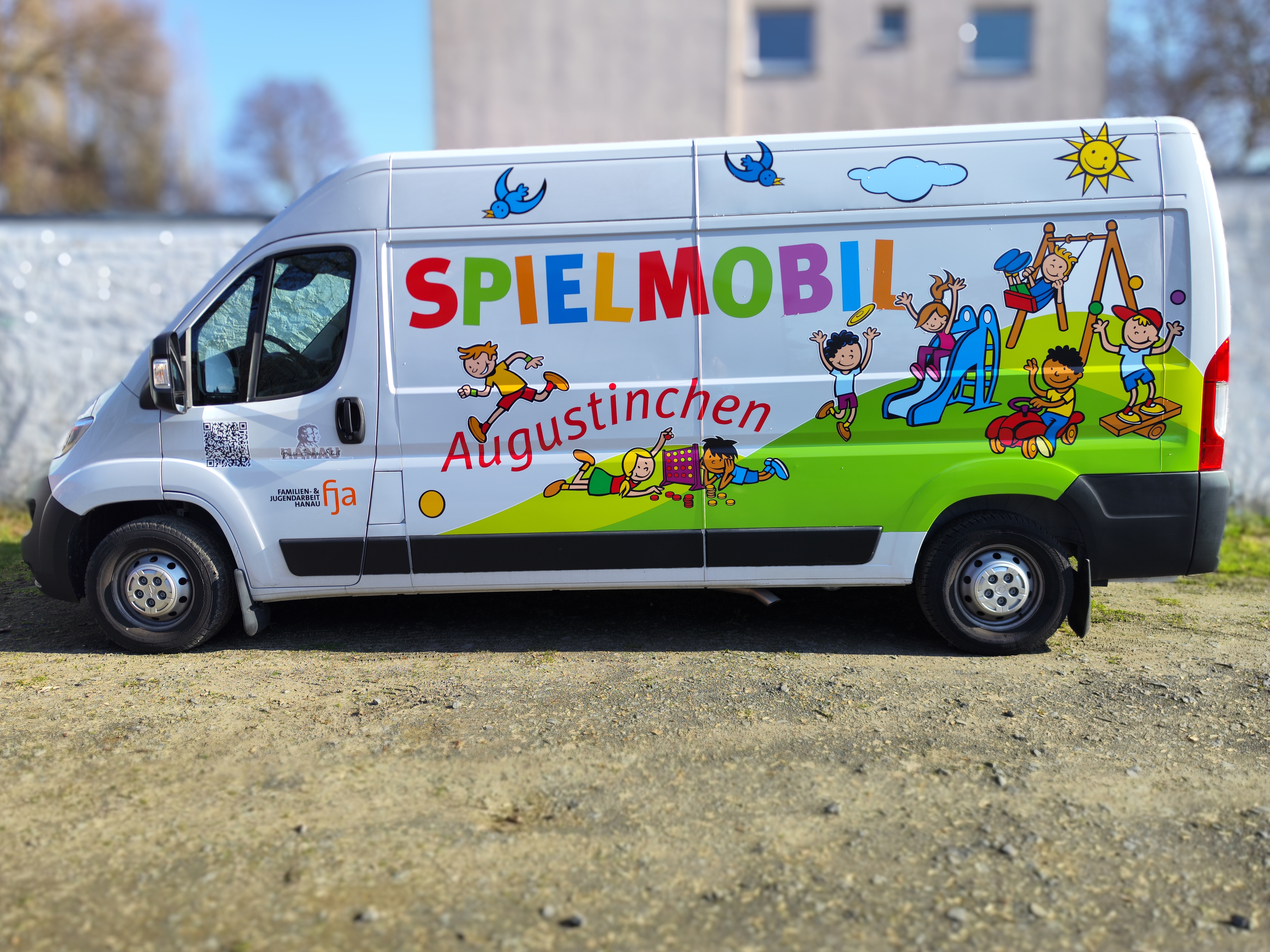 Unter dem Motto „Die bunte Welt von Bewegung, Spiele und Spaß“  besucht das Spielmobil Augustinchen ab Montag, den 13.04.2026 wieder immer von Montag bis Donnerstag 15.00 bis 19.00 Uhr die Hanauer Spielplätze. Das Spielmobil bietet den Kindern Raum und Zeit die verschiedensten Spiel- und Sportgeräte auszuprobieren, in die Welt der Artistik einzutauchen, ihre Kreativität bei stets variierenden Bastelangeboten auszuleben und spielerisch Spaß an Bewegung zu entdecken. Das Angebot richtet sich an alle Kinder und Familien.